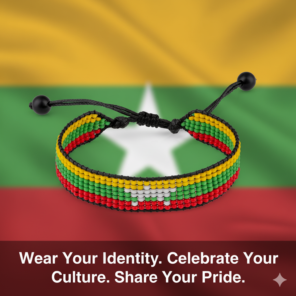 Myanmar Flag Bracelet: Handmade Adjustable, Boho Style Rope Bracelet for Women & Men