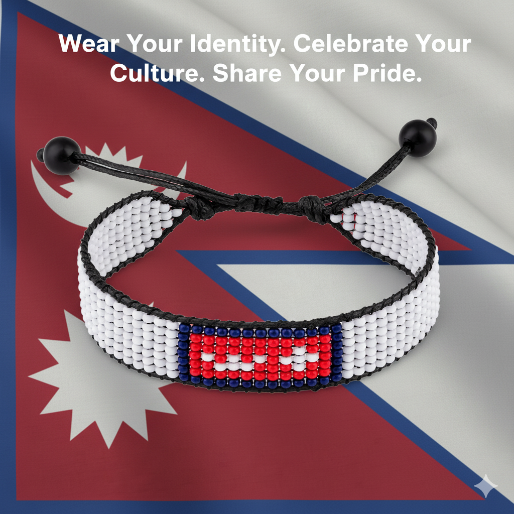 Nepal Flag Bracelet: Adjustable, Boho Style Rope Bracelet for Women & Men