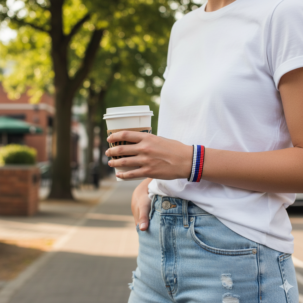 Russia Flag Bracelet: Handmade, Adjustable Beaded Unisex Boho-Style Jewelry