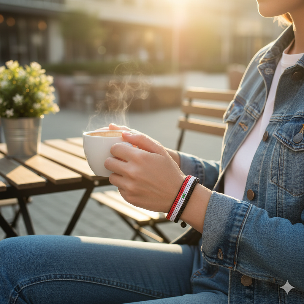 Syria Flag Bracelet: Arabian Elegance, Handcrafted Adjustable Unisex Boho Style Jewerly