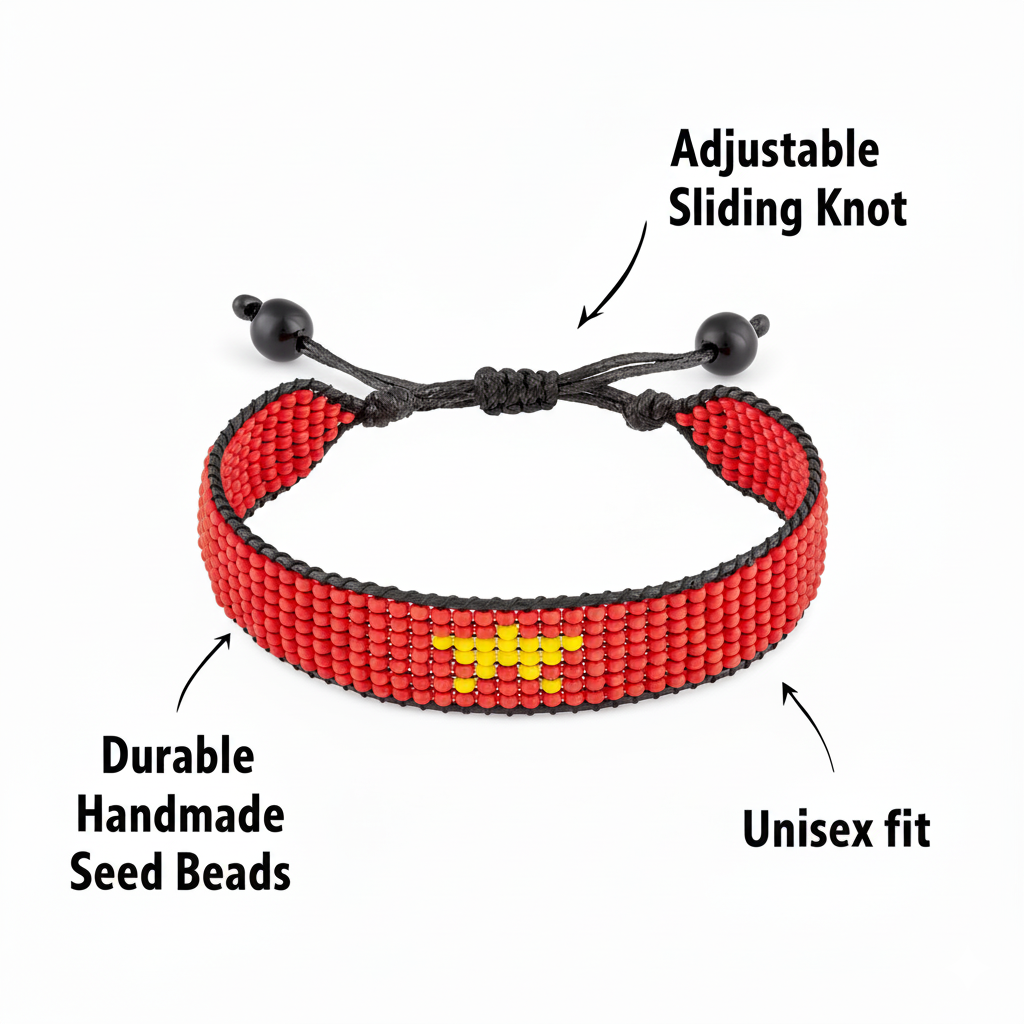 Vietnam Flag Bracelet: Handmade, Adjustable Boho-Style Rope Bracelet with Patriotic Design