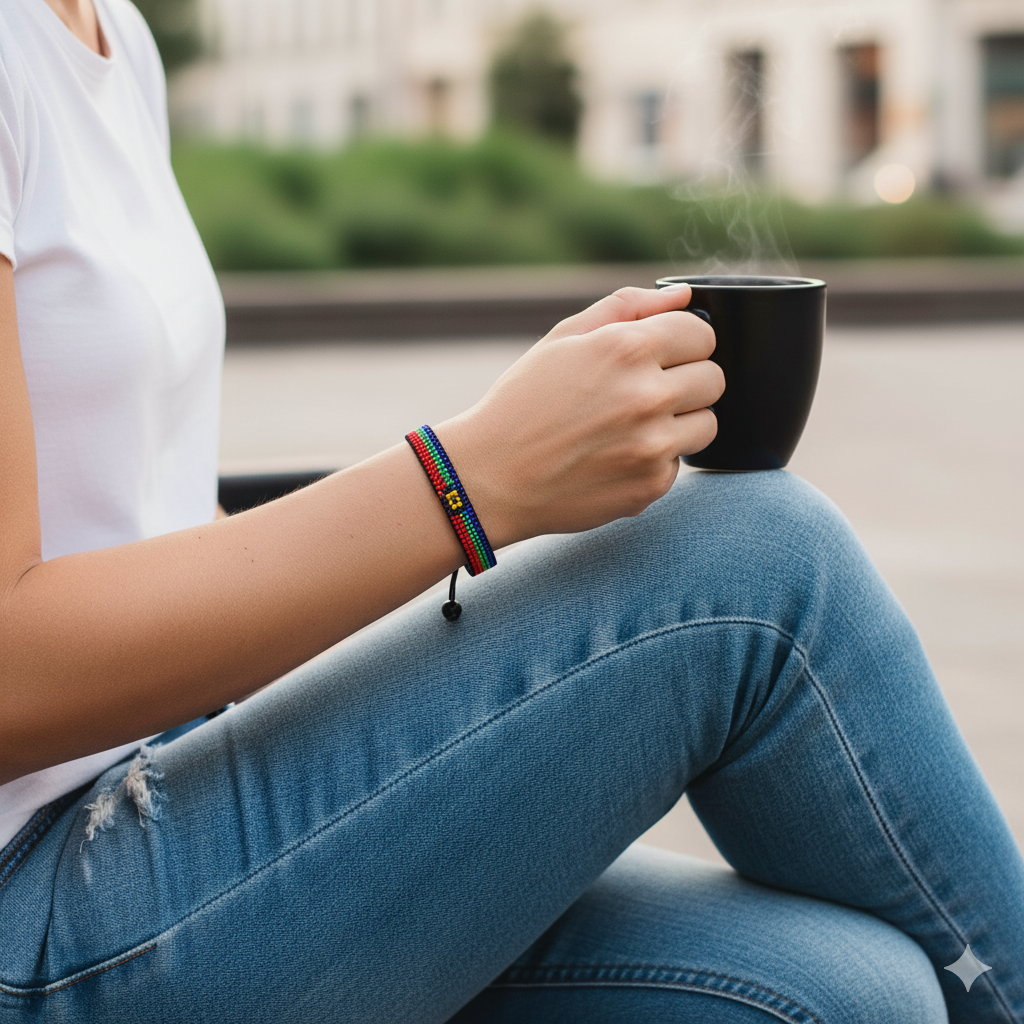New Caledonia Flag Bracelet: Adjustable, Boho Style Rope Bracelet for Women & Men
