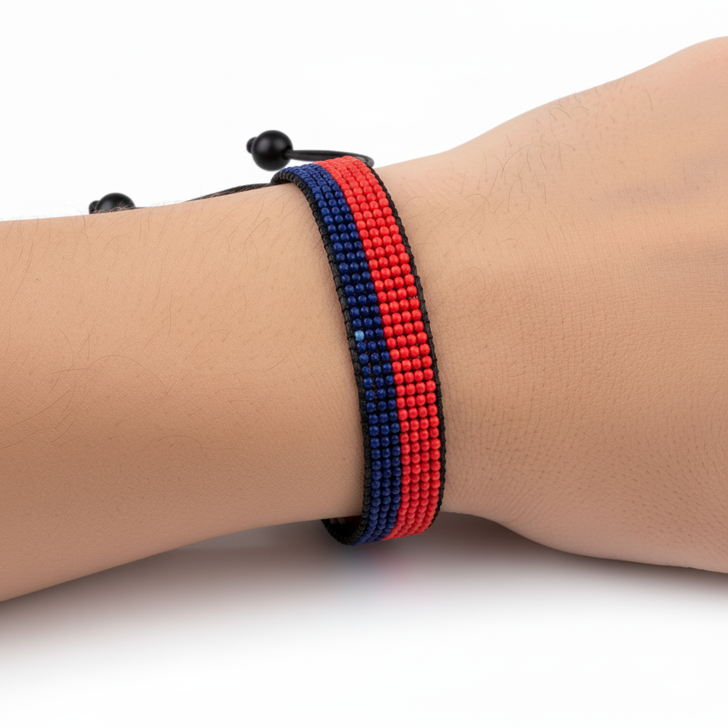 Belize Flag Bracelet: Handmade, with Adjustable Beaded String.