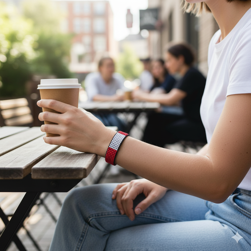 Peru Flag Bracelet: Beaded, Adjustable, Boho Style Rope Bracelet for Women & Men