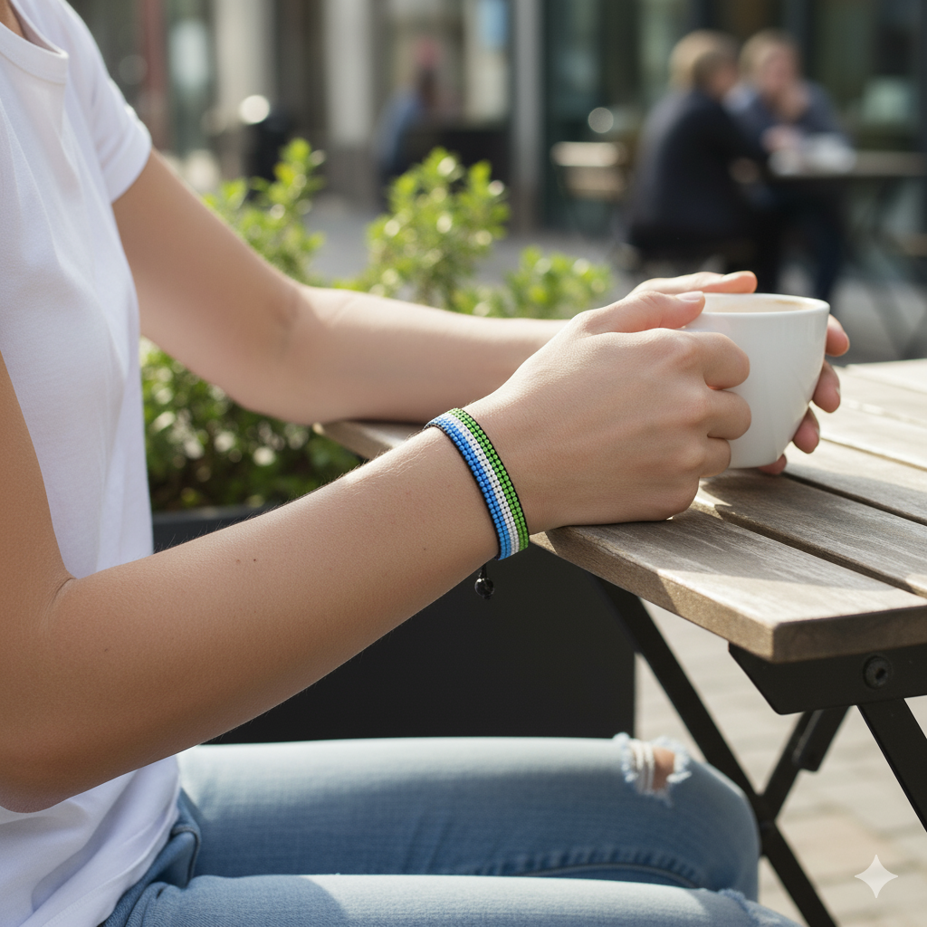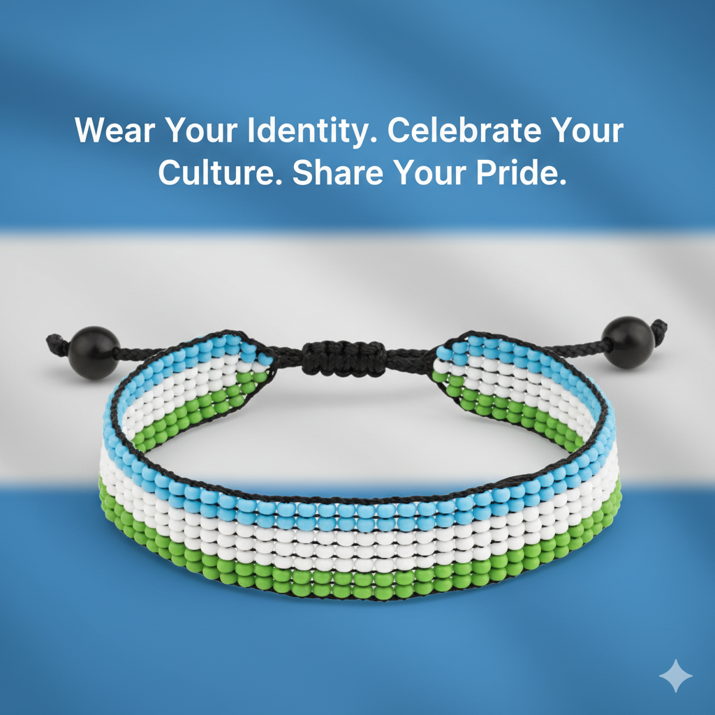 SierrLeone Flag Bracelet: Handmade, Adjustable Beaded Unisex Boho-Style Jewerly with Patriotic Design