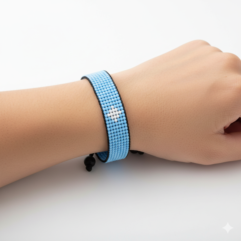 Bahamas Flag Bracelet: Handmade Bracelet, Adjustable Beaded String with Patriotic Design.